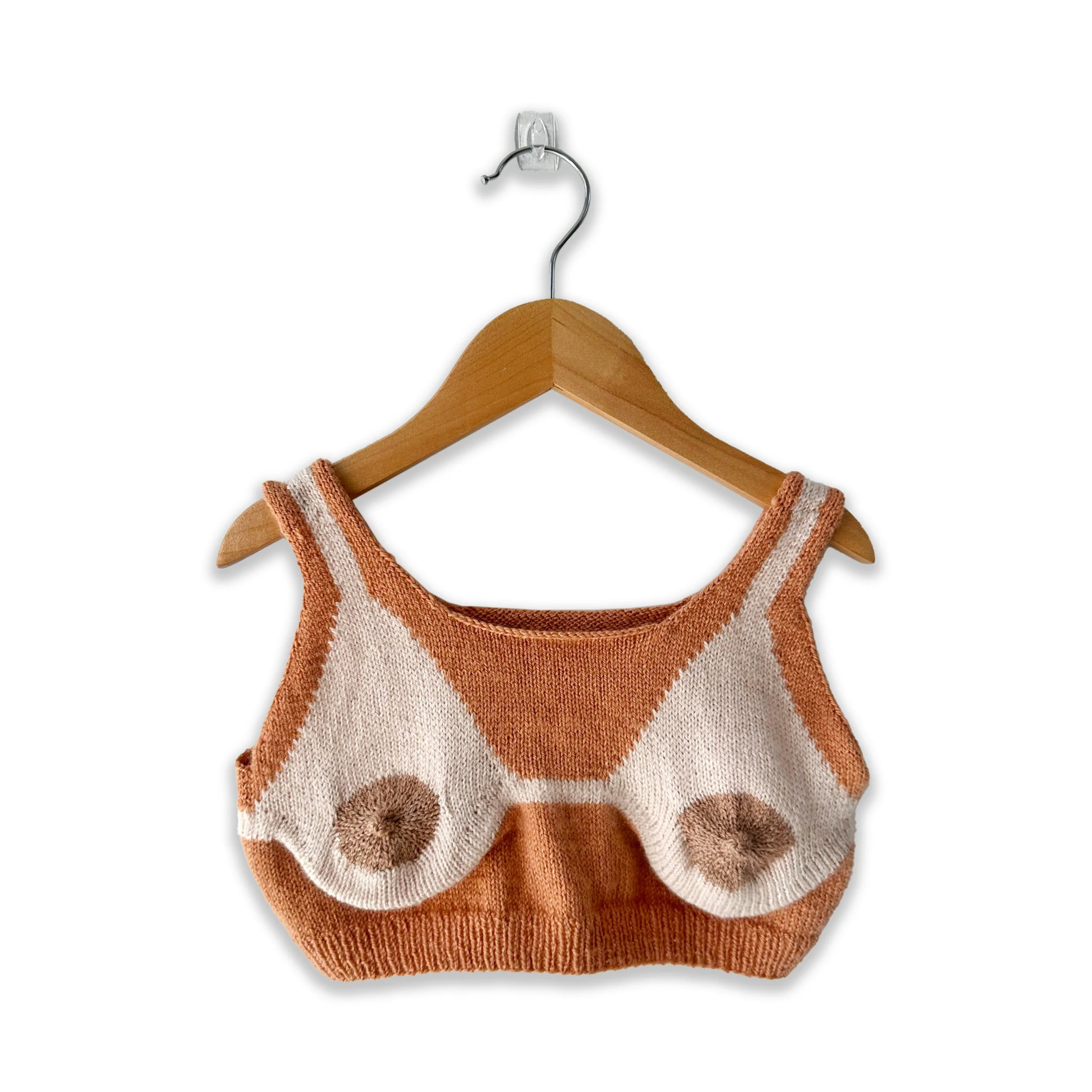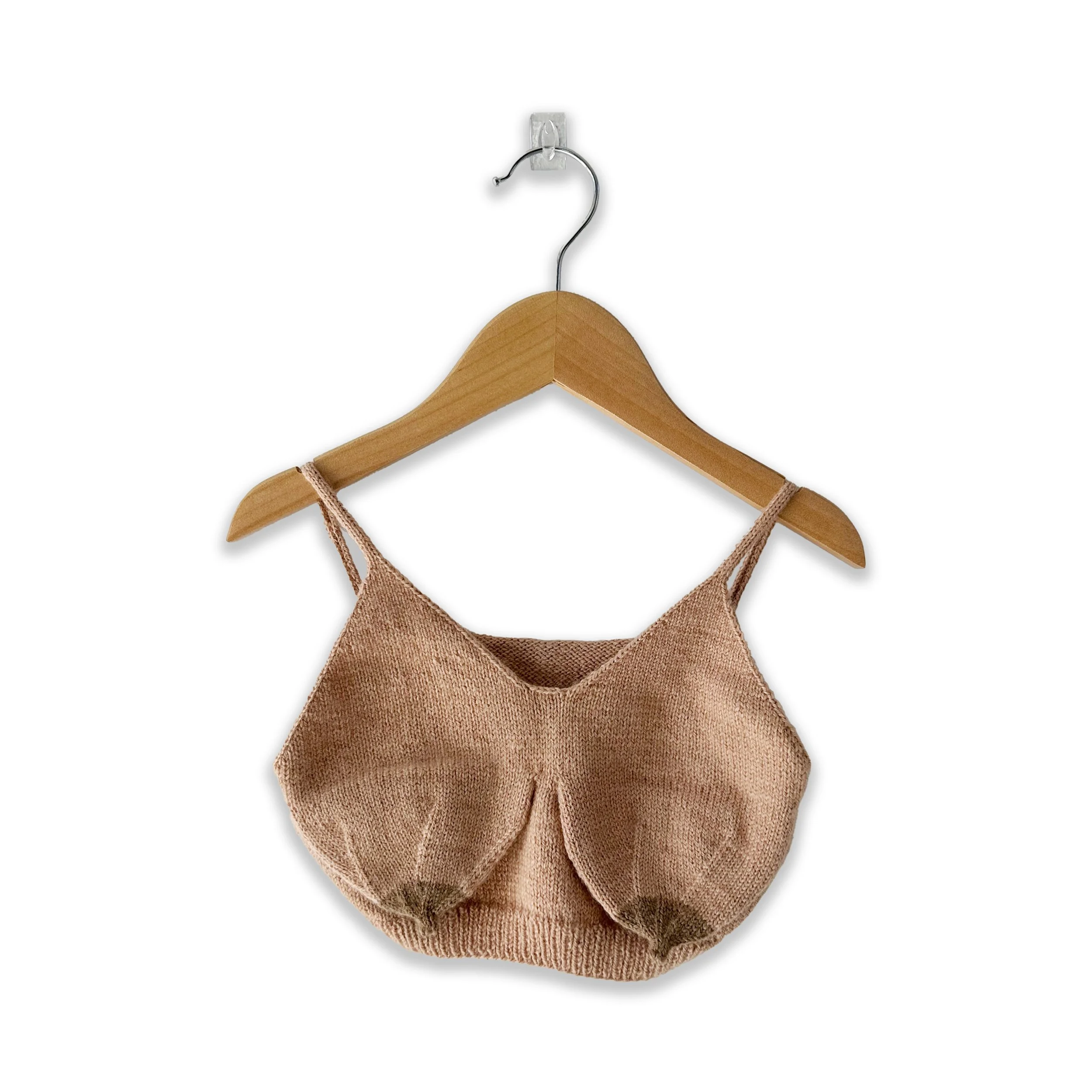 Hand knit with soft wool, the Mom Bras are an invitation to discuss the complexities of a life with breasts. Maybe you will see your exhausted sister or your grandmother’s scars. Maybe you will see yourself and feel connected and proud. Maybe this series will be educational and allow you the chance to see bodies that are different from your own for the first time. The hope of the exhibition is to honor the unique qualities of all women regardless of size, shape, color, or identity.