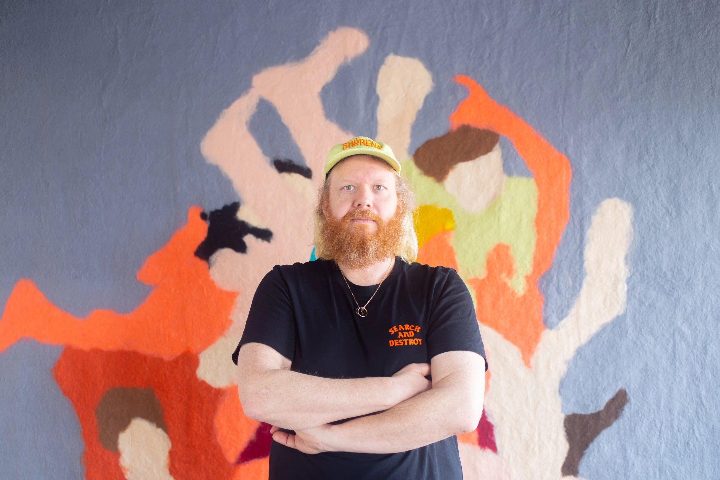 Marlon Wobst (Born 1980 in Wiesbaden) graduated as a painter and master student at Universität der Künste Berlin in 2011 with Professor Robert Lucander. In his body of work, which includes oil paintings, felt tapestries, ceramics, and works on paper; he mainly addresses the human existence. He researches typical everyday moments in life, such as getting dressed, exercising, eating, resting or mating. His large scale paintings, the colorful felt works and rather small, intimate ceramics are all glimpses in his, but also human experiences, rituals and habits. His works are shown internationally in galleries, museums and institutions such as Kunstverein Siegen (Siegen), Kunsthal Charlottenborg (Copenhagen), Kunsthalle Hangelar (Sankt Augustin), Galerie Maria Lund (Paris), Galerie Zeller van Almsick (Vienna), and Galleri Urbane (Dallas). Since 2021, Marlon Wobst has a lectureship for painting at the Universität der Künste Berlin.