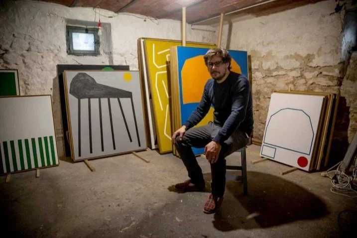 Bertrand Fournier’s practice explores a playful tension between abstraction and suggestion. His work reduces forms to essential, almost childlike geometries, allowing color and line to carry symbolic and emotional weight. Fournier moves freely across series to avoid constraint, cultivating a visual language that is both immediate and enigmatic. Bold, flat colour fields and irregular shapes coexist in fragile harmony. In this liminal space, his compositions become landscapes of thought: simple in appearance yet rich in coded meaning.