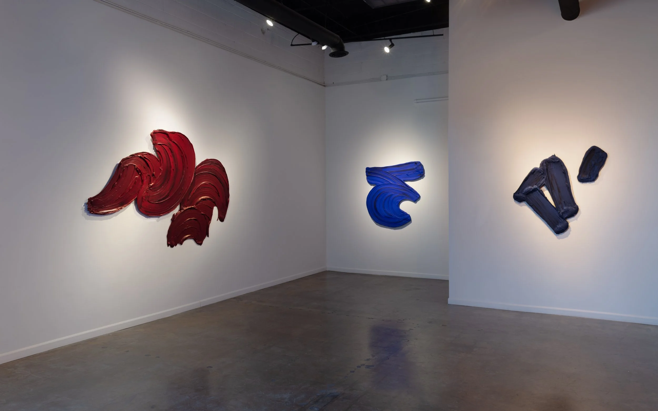 Artists have been exploring beyond the rectangle in the making of shaped paintings throughout the history of art, ranging from Cimabue to Frank Stella. Most typically in this endeavor, artists have built a substrate structure first and then responded by painting it. Martiny flipped the model: “I went a different way. I wanted the act of painting itself to determine the form of the paintings. After much experimentation, I began to paint freely on generous expanses of aluminum. I initially experimented with application tools, then was drawn closer, ultimately painting with my hands. Then I simply cut away the negative areas," says Martiny. "The form follows the painting, rather than the painting following the form.”