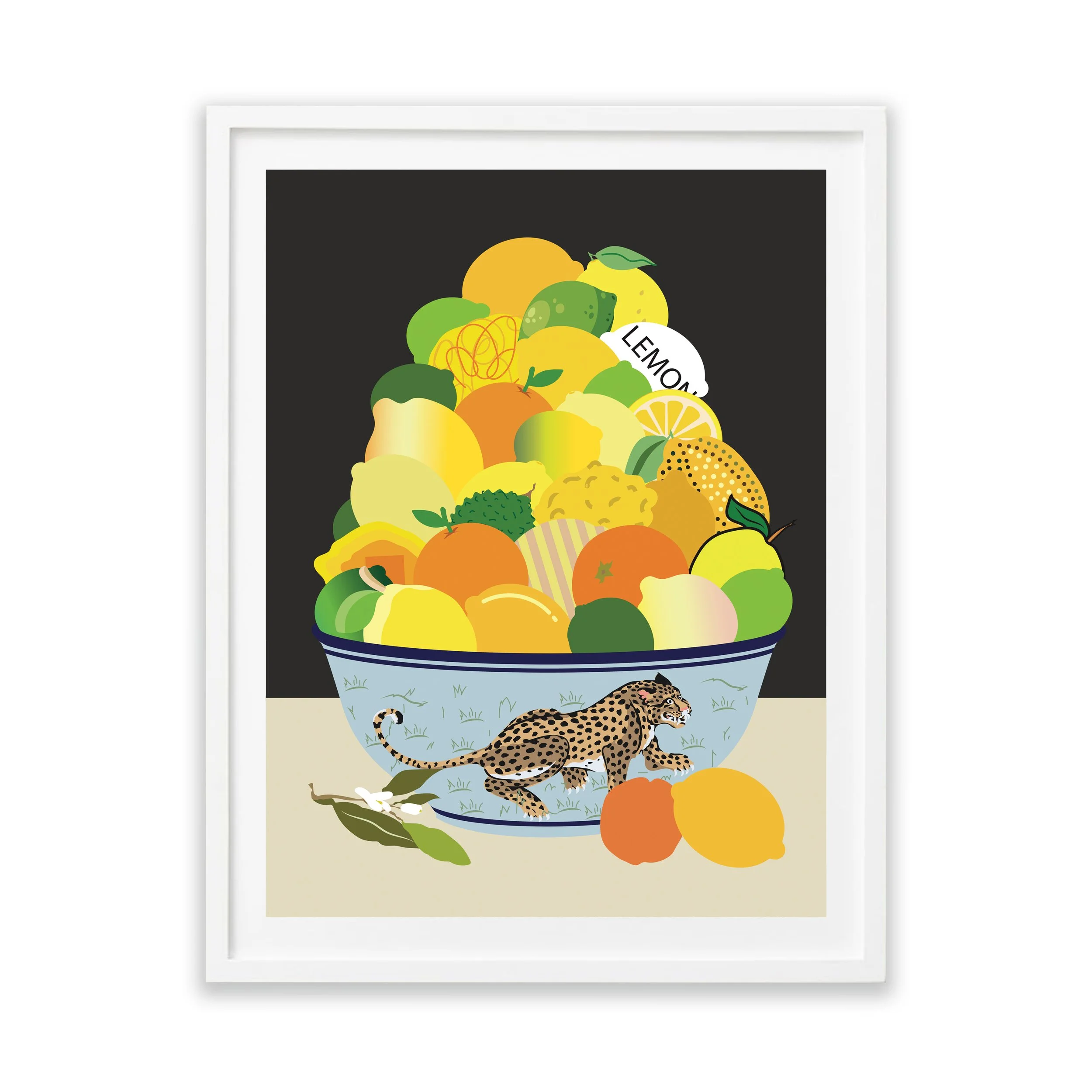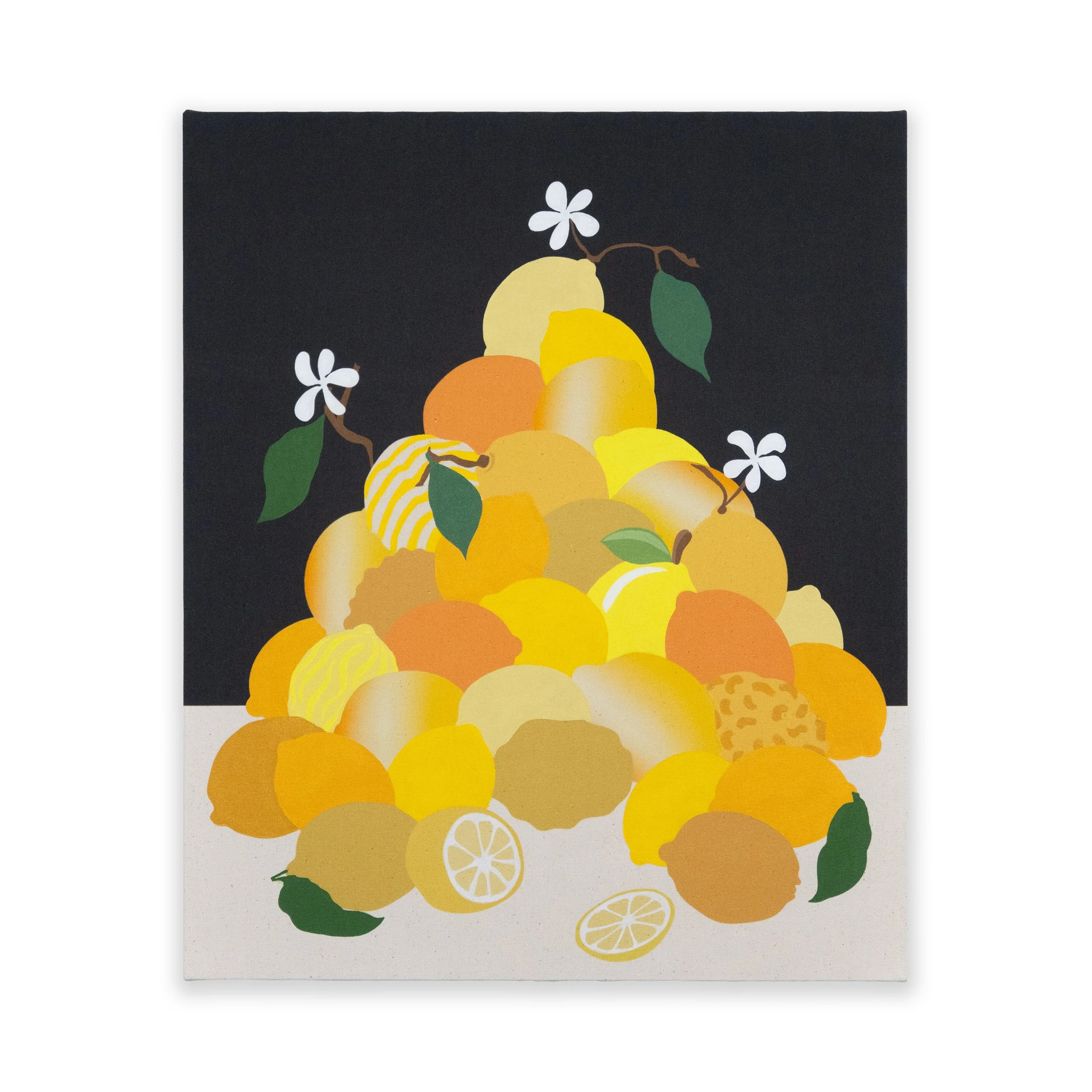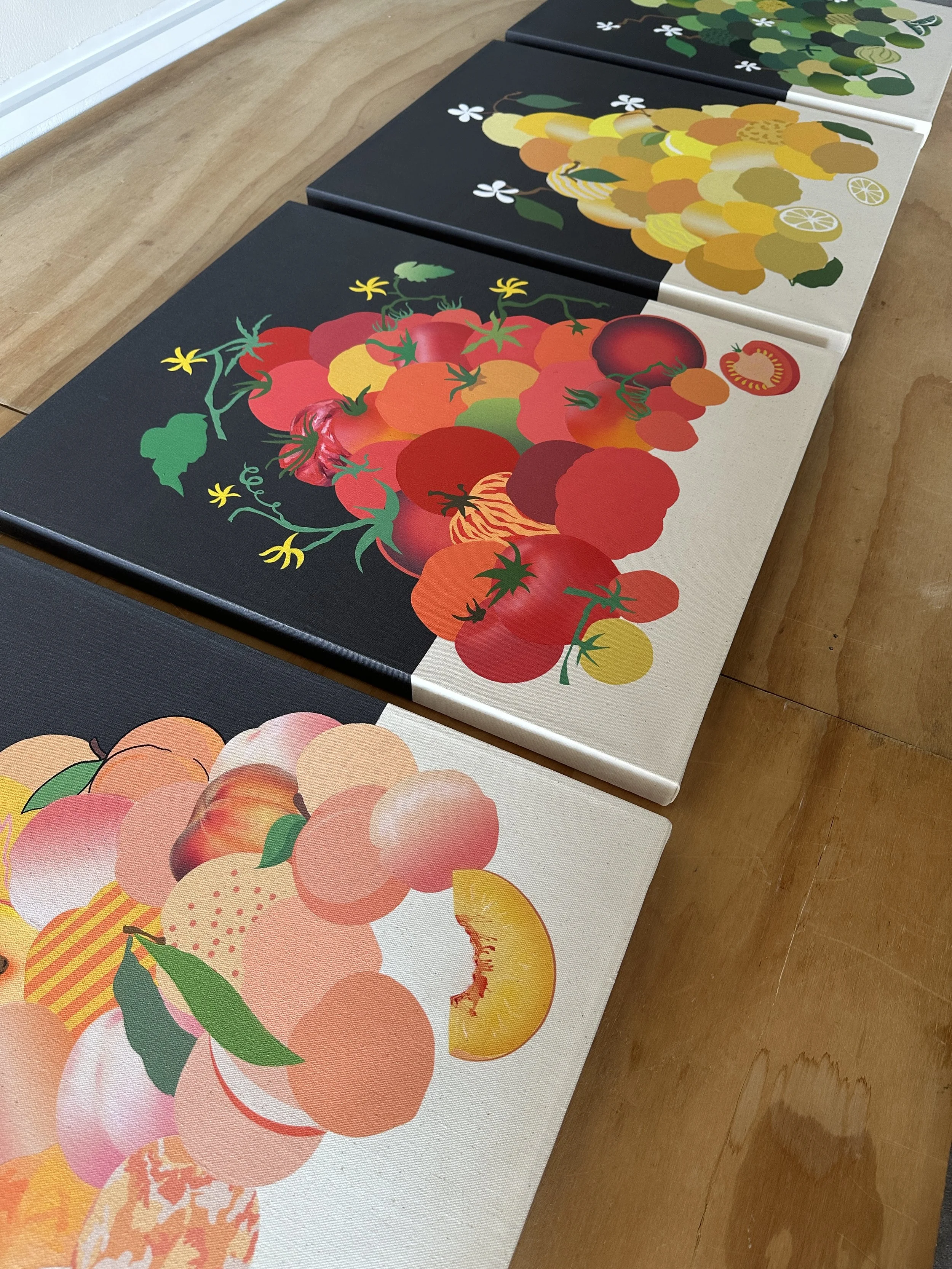 Building on the style of his past work, the prints feature fruit piles, bowls of fruit, Arborist motifs, and botanical forms rendered in pigmented ink on paper or printed canvas editions, with hand-painted details that balance the artist’s hand with mass production.