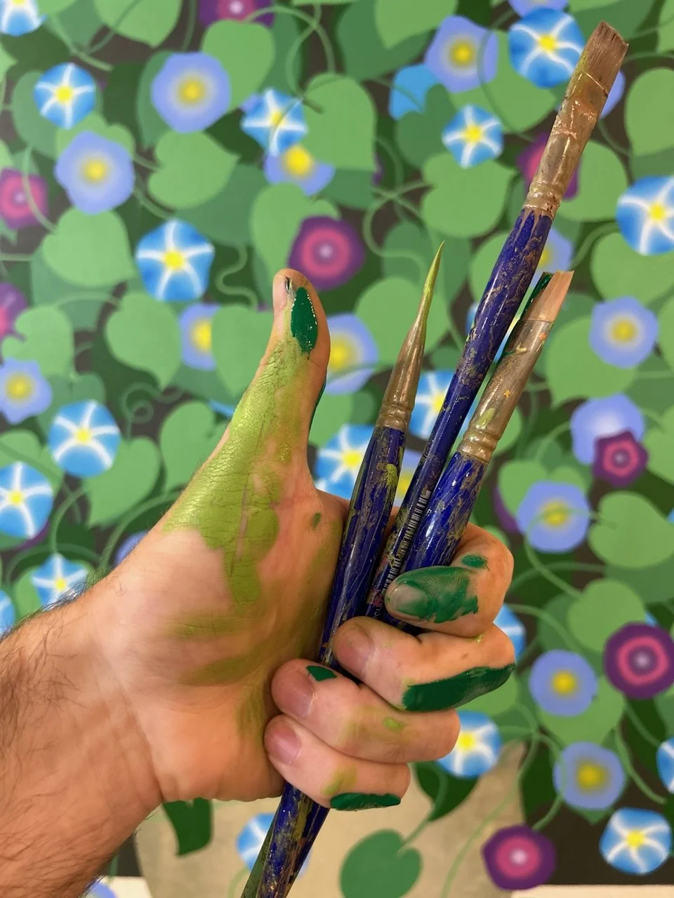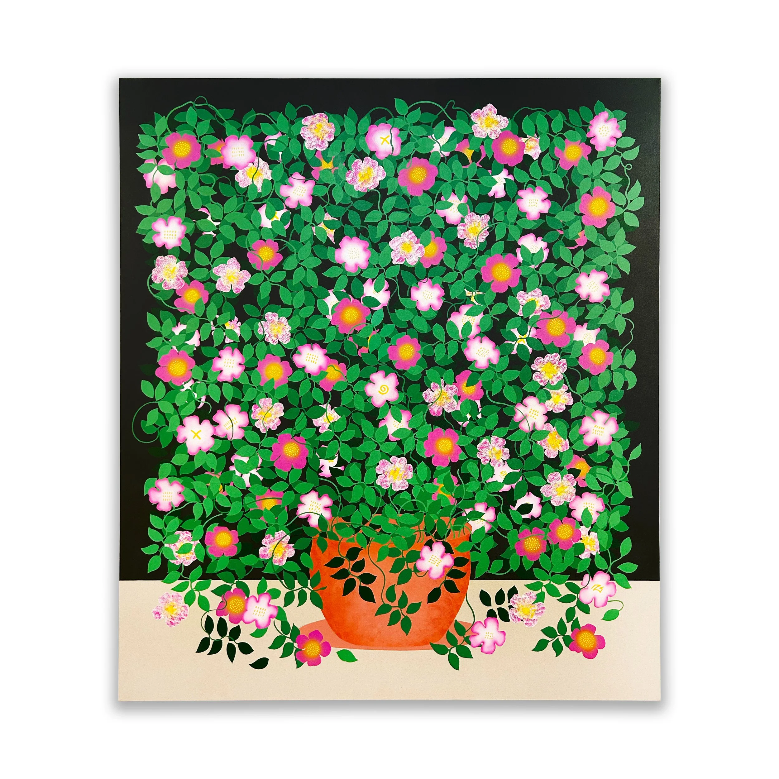 Galleri Urbane is pleased to announce Green Thumb, a solo exhibition of work by Stephen D’Onofrio. This is the Philadelphia-based artist’s fifth solo show with the gallery. Green Thumb is a visual exploration, where the boundaries between nature, art, and everyday design blur into a vibrant tapestry of color and form. This new body of work delves into the world of flowering vines and fruit bowls adorned with blooms, drawing inspiration from the rich tradition of European still life masters and the precision of scientific illustration.