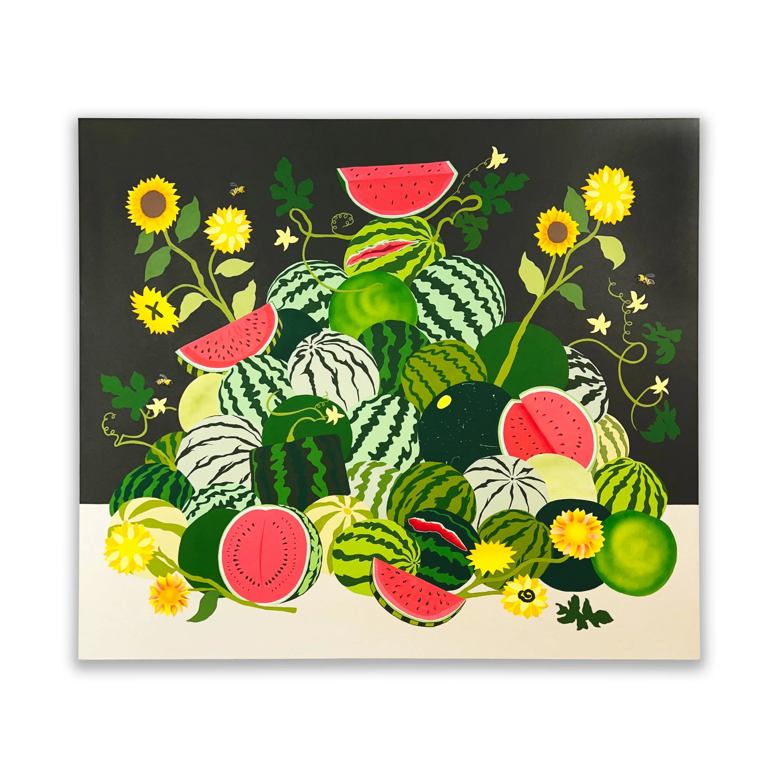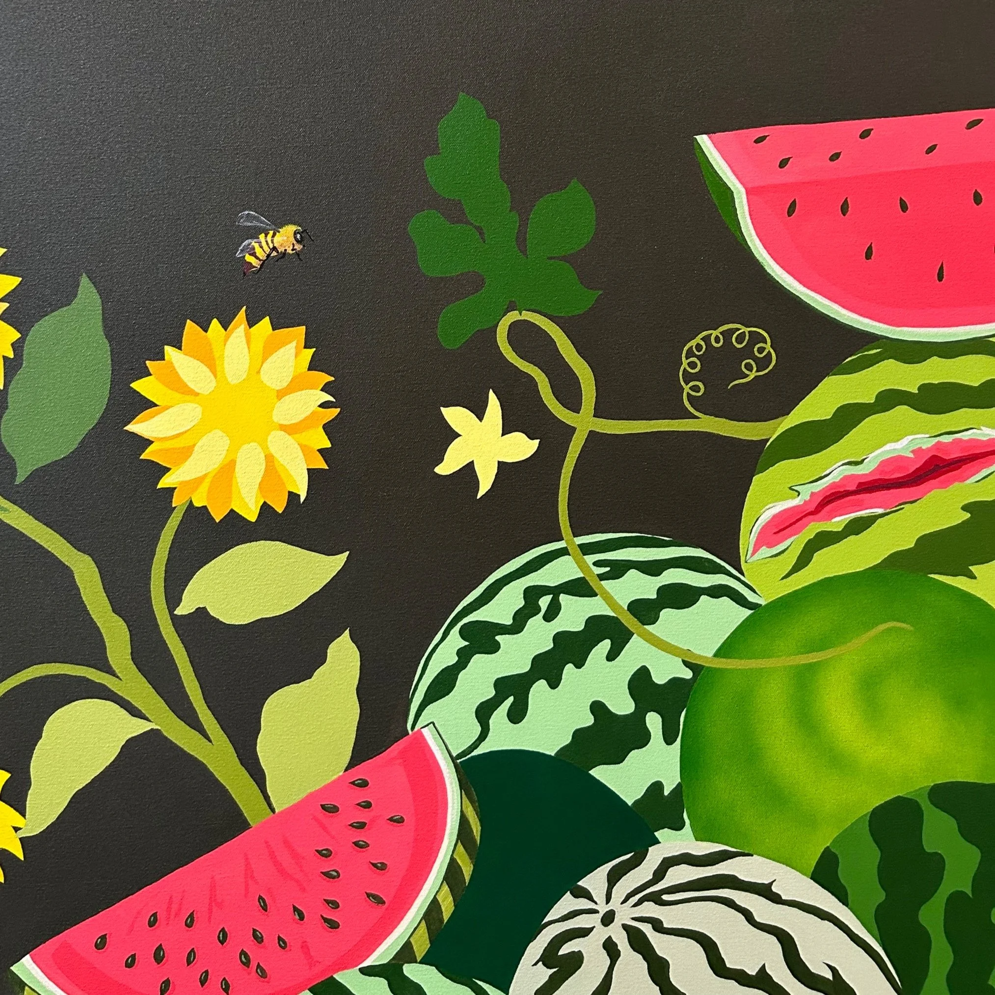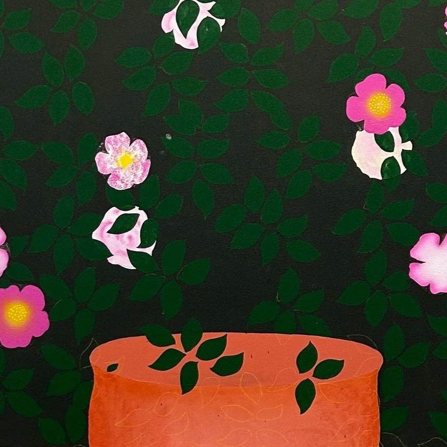 “Green Thumb, a visual exploration where the boundaries between nature, art, and everyday design blur into a vibrant tapestry of color and form. This new body of work delves into the world of flowering vines and fruit bowls adorned with blooms, drawing inspiration from the rich tradition of European still life masters and the precision of scientific illustration.