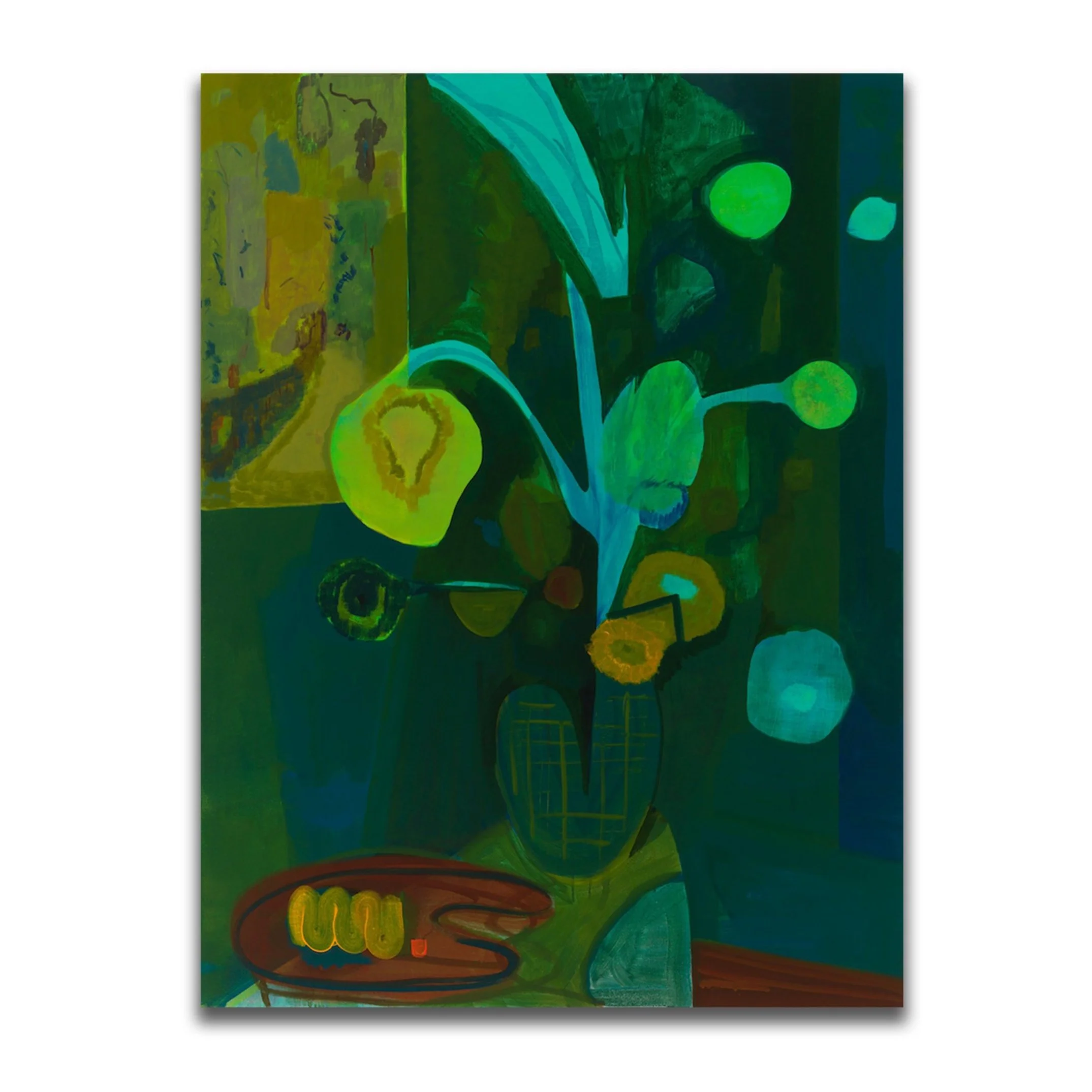 Michelle Wasson’s paintings offer a sensual refuge from reality. Created intuitively from memory and imagination, layers of color and light portray surreal cosmic travel, supernatural spaces, and flashes of art history. In glowing scenes, vessels spring forth life and specters emerge, evoking Mother Nature’s power to create and destroy—and create again