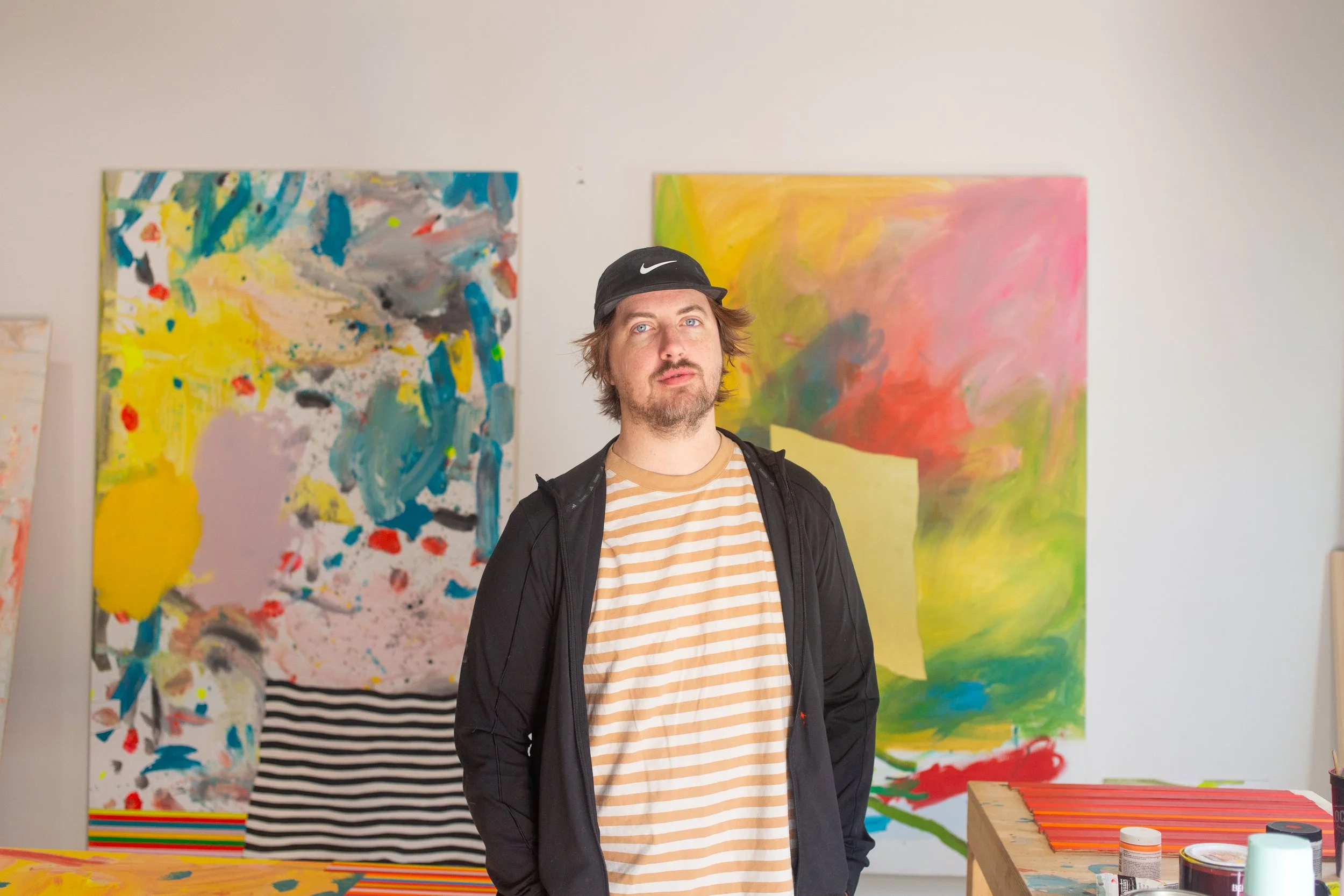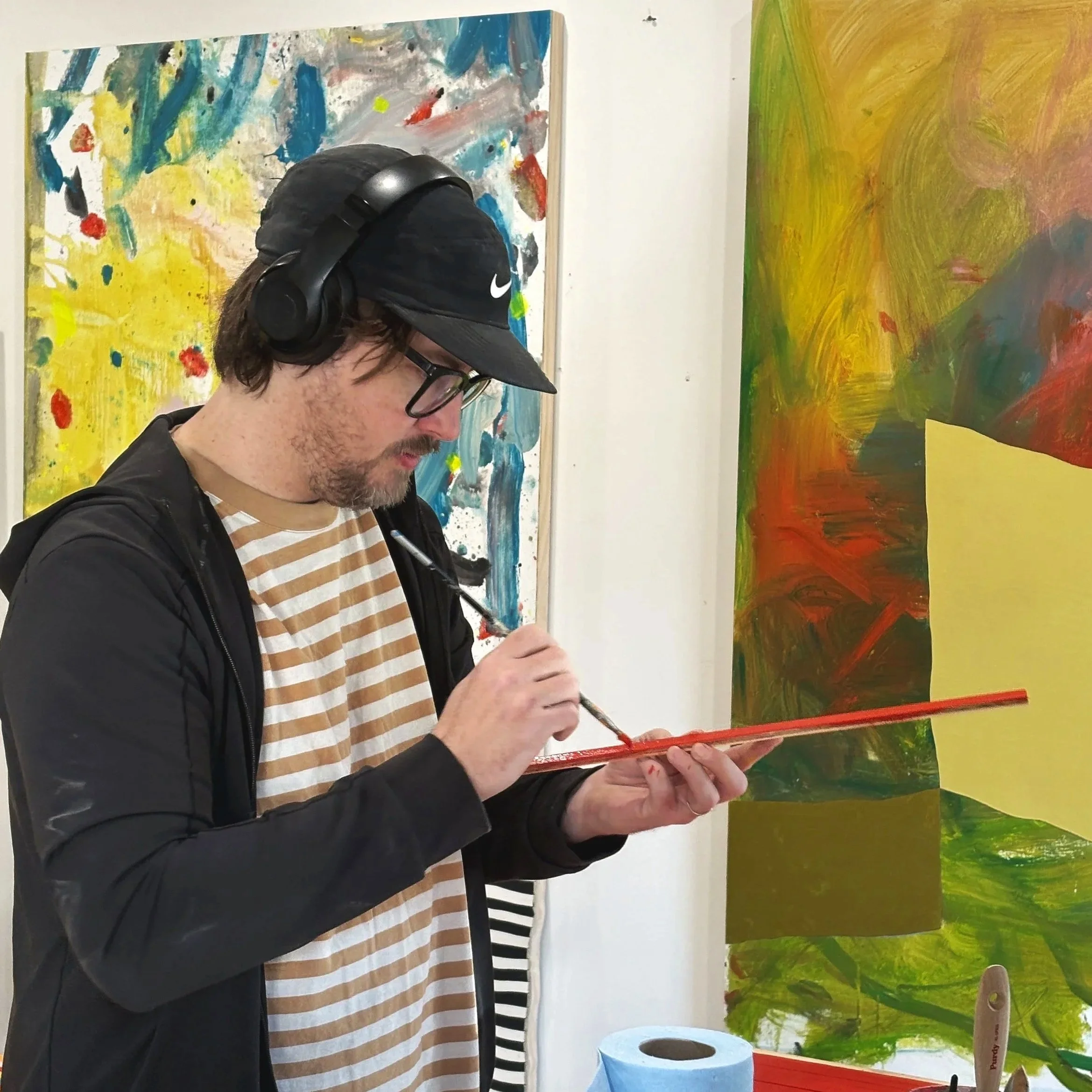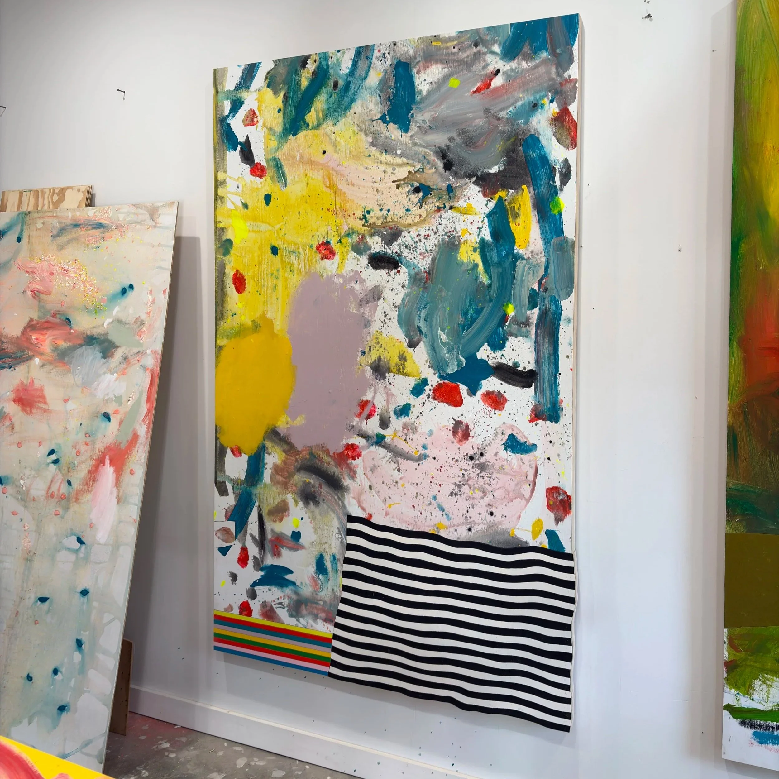 “The paintings engage the language of painterly abstraction and action painting, a language I’ve come to know well over the last several years and care deeply about. I’m attentive to it. When a gesture tips from intuitive to fussy, when a surface resists or absorbs too much, when confidence hardens into habit. These distinctions matter to me, and they come from years of looking, failing, and learning inside that tradition. At the same time, this work is not an attempt to inhabit that history. It is about fitting and not fitting. About fluency without ease.”