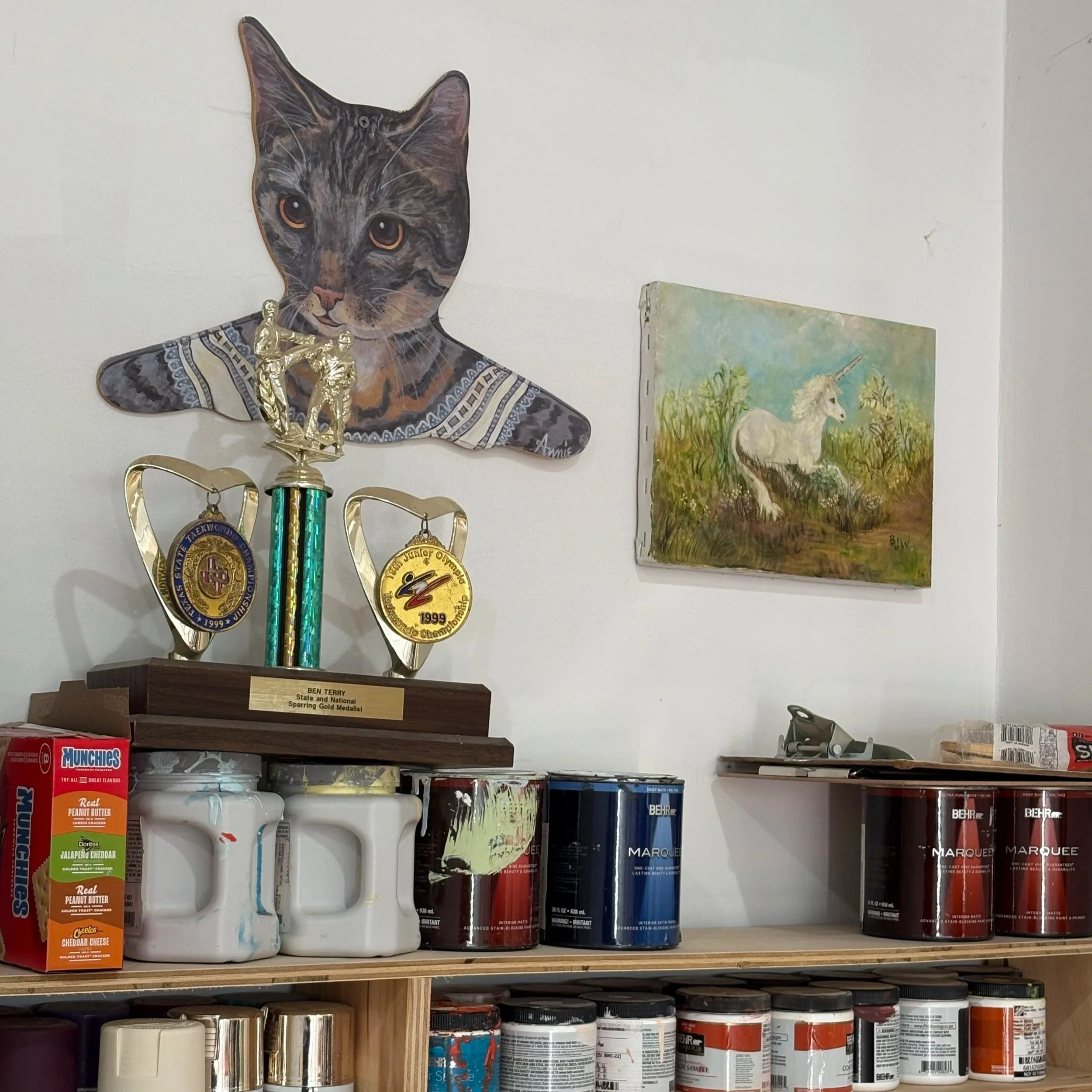 Benjamin Terry lives and works in Dallas, TX. He received an MFA in Drawing and Painting from the University of North Texas in 2013. He has exhibited work in numerous solo and group exhibitions both nation wide and internationally including; N.Y, London, Mexico City, San Francisco and Texas. Recent exhibitions include Chateau Show (2024), The Aldredge House, Dallas, Tx; Done Being Cool (2024), Galleri Urbane, Dallas, Tx; and Funny Feeling (2025) Paper Mill Projects, Chatham, N.Y. His artwork has been exhibited at the Dallas Art Fair, Aspen Art Fair, and Untitled Art, Miami. Terry was an artist- in-resident at The Maple Terrace, Brooklyn, N.Y. 2018; 100 West Corsicana in 2020; PRIXEL, Hudson, N.Y. in 2025; and the Bodecker project at the Cedars Union, Dallas, Tx. Curatorial projects are an integral part of his practice with curated exhibitions at Kirk Hopper Fine Arts, Galleri Urbane, and Texas Woman’s University. Terry was featured in volumes 96 and 132 of New American Paintings, and has received both the Clare Hart Degoyler and the Arch and Anne Giles Kimbrough awards from the Dallas Museum of Art. He is currently a Distinguished Senior Lecturer at the University of Texas, Arlington.
